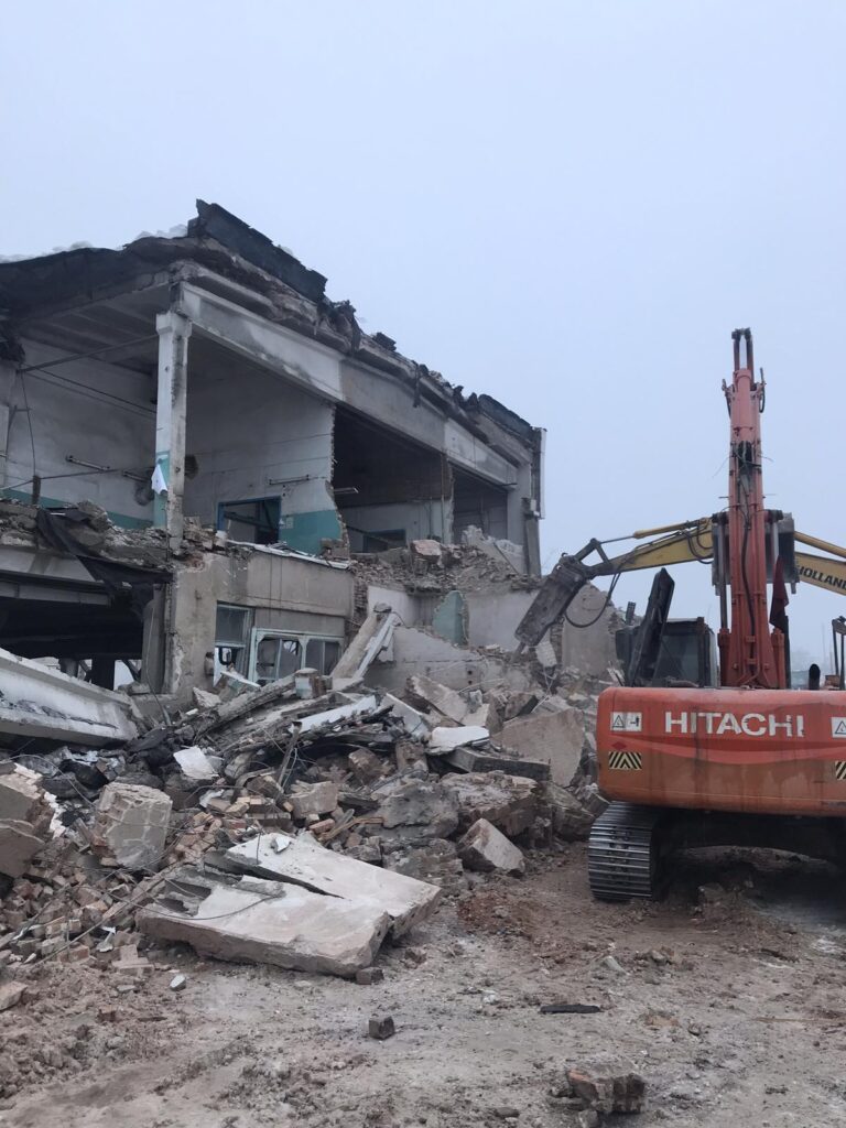 - постепенный демонтаж сооружения, начиная с кровли с применением экскаваторов и специальной техники;