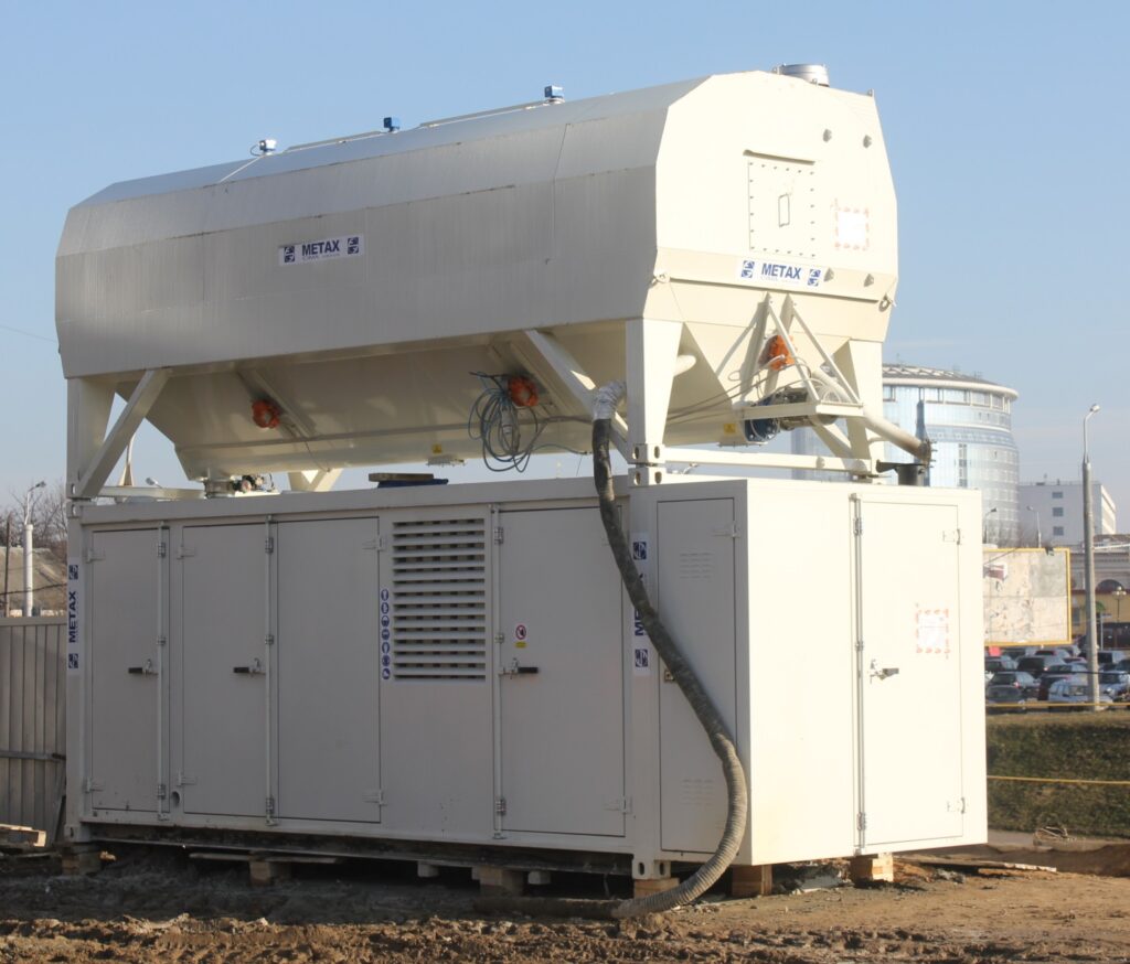 Комплекс замешивания и оборудование для струйной цементации обладает следующими основными характеристиками: производительность замешивания 12 м3/ч; емкость бака 2000 л; емкость смесителя 350 л; максимальное давление- 450 бар; максимальная мощность двигателя- 400-450 кВт; вес 12500 кг.
