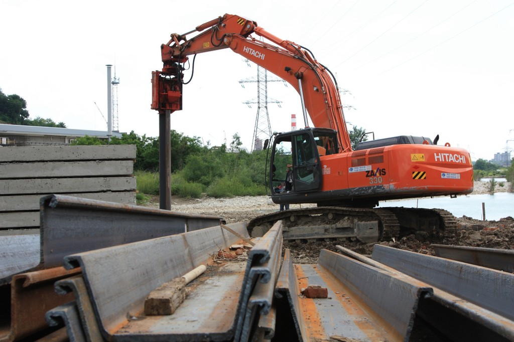 Работы по вибропогружению стального шпунта осуществляются следующей техникой: Liebherr LRB-125, БКМ-2012, ABI TM 1417.